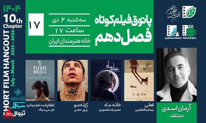هفدهمین جلسه از دهمین فصل پاتوق فیلم کوتاه، روز سهشنبه ۲دی ۱۴۰۴ با نمایش ۴ فیلم کوتاه در خانه هنرمندان ایران برگزار خواهد شد.