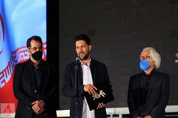 پس از پایان صحبت های حامد بهداد، رضا میرکریمی برای دریافت جایزه اش برای کارگردانی «قصر شیرین» روی سن آمد و جایزه خود را دریافت کرد.