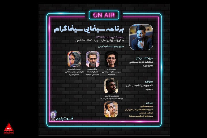 به گزارش ردکارپت فیلم: پنجمین قسمت از برنامه رادیویی «سینماگرام» با پرداختن به موضوع «سینمای هنروتجربه» امشب (جمعه ۹ تیر) ساعت ۲۱ از رادیو نمایش پخش میشود.